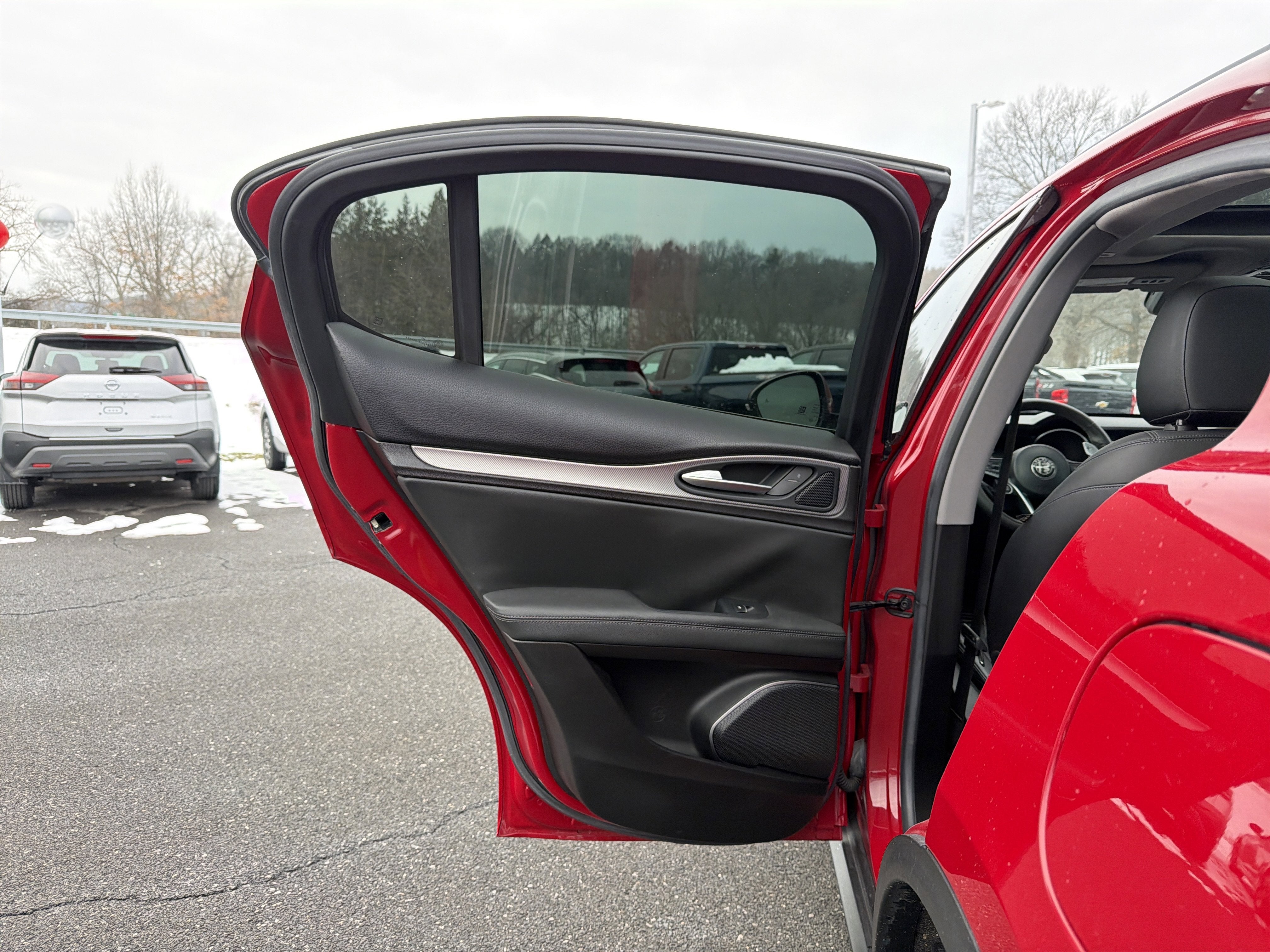 Romeo Nissan is proud to present this 2018 Alfa Romeo Stelvio with Driver Assistance Static w/Front Sensors Package (Auto-Dimming Exterior Mirrors, Blind Spot & Cross Path Detection, and Front/Rear Park Assist System), Quick Order Package 22J Sport (Aluminum Interior Trim, Aluminum Steering Column Mounted Paddle Shifters, Black Roof Rails, Bright Aluminum Pedals, Colored Brake Calipers, Gloss Black Window Surround Moldings, Sport Leather-Wrapped Steering Wheel, Sport Tuned Front Dampers, Tire Service Kit, and Wheels: 19 x 8.0 Sport 5-Hole Aluminum), 1-Year SiriusXM Radio Service, 3.73 Axle Ratio, 4-Wheel Disc Brakes, 8 Speakers, 8.8 Widescreen Color Display, ABS brakes, Air Conditioning, Alloy wheels, AM/FM radio, Auto-dimming Rear-View mirror, Automatic temperature control, Brake assist, Bumpers: body-color, Compass, Delay-off headlights, Driver door bin, Driver vanity mirror, Dual front impact airbags, Dual front side impact airbags, Dual-Pane Sunroof, Electronic Stability Control, Four wheel independent suspension, Front anti-roll bar, Front Bucket Seats, Front Center Armrest, Front dual zone A/C, Front reading lights, Fully automatic headlights, Garage door transmitter, Gloss Black Shark Fin Antenna, Gloss Red Calipers w/White Script, HD Radio, Heated door mirrors, High intensity discharge headlights: Bi-Xenon, Illuminated entry, Knee airbag, Leather Seats, Leather Shift Knob, Low tire pressure warning, Memory seat, No Satellite Coverage HI/AK/PR/VI/GU, Occupant sensing airbag, Outside temperature display, Overhead airbag, Overhead console, Panic alarm, ParkView Rear Back-Up Camera, Passenger door bin, Passenger vanity mirror, Power door mirrors, Power driver seat, Power Liftgate, Power passenger seat, Power steering, Power windows, Radio data system, Radio: AM/FM w/Bluetooth® 6.5, Radio: AM/FM/HD Bluetooth® w/Nav 8.8, Rain sensing wipers, Rear anti-roll bar, Rear audio controls, Rear fog lights, Rear reading lights, Rear seat center armrest, Rear window defroster, Rear window wiper, Remote keyless entry, Roof rack: rails only, Security system, SiriusXM Satellite Radio, Speed control, Speed-sensing steering, Speed-Sensitive Wipers, Split folding rear seat, Spoiler, Sport steering wheel, Steering wheel mounted audio controls, Tachometer, Telescoping steering wheel, Tilt steering wheel, Traction control, Trip computer, Turn signal indicator mirrors, Variably intermittent wipers, Wheels: 18 x 8.0 5-Spoke Aluminum, and Wheels: 20 x 8.5 Sport Aluminum.