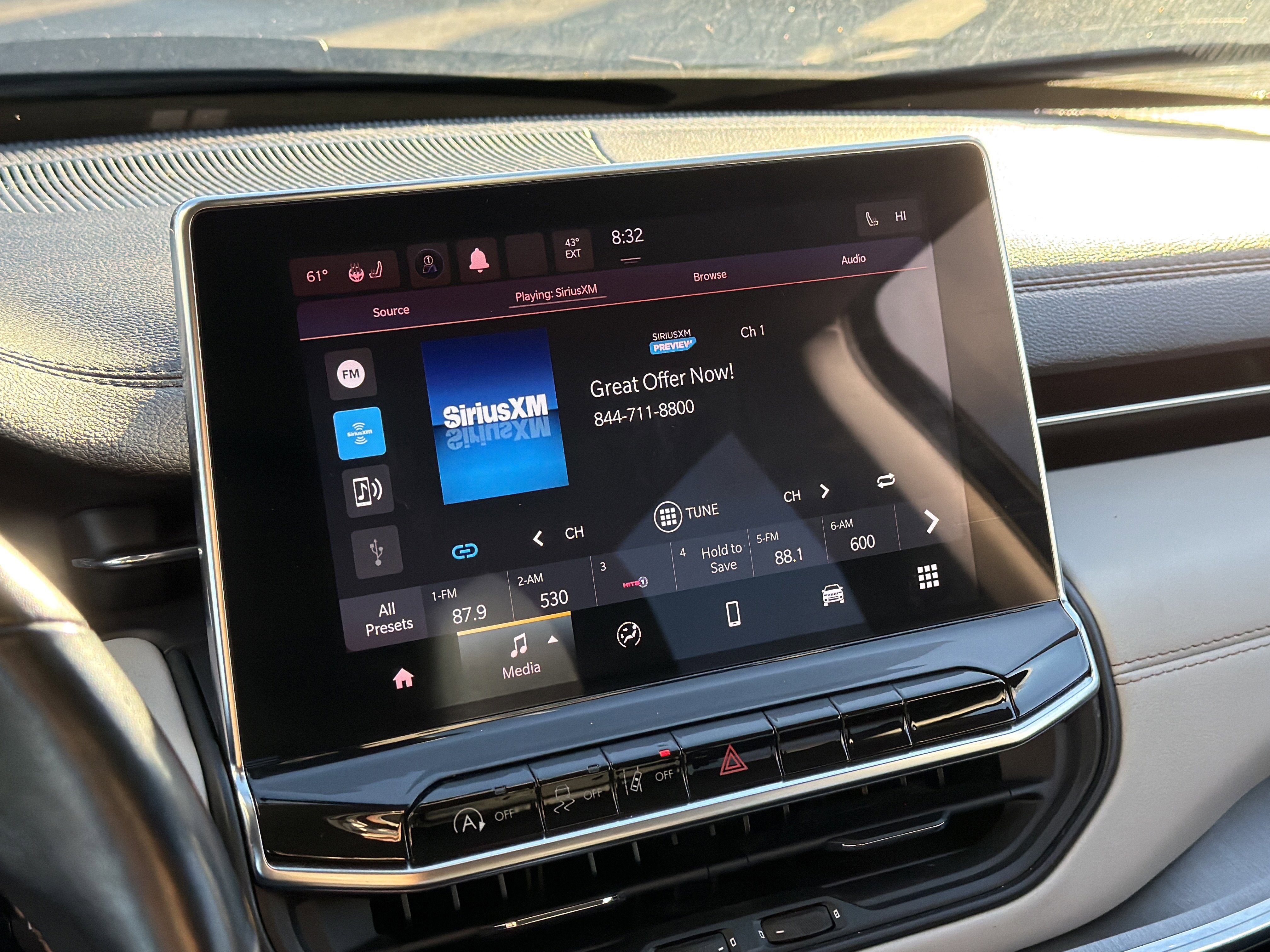 - UConnect 5 w/Seek-Scan, Clock, Aux Audio Input Jack, Steering Wheel Controls and Voice Activation