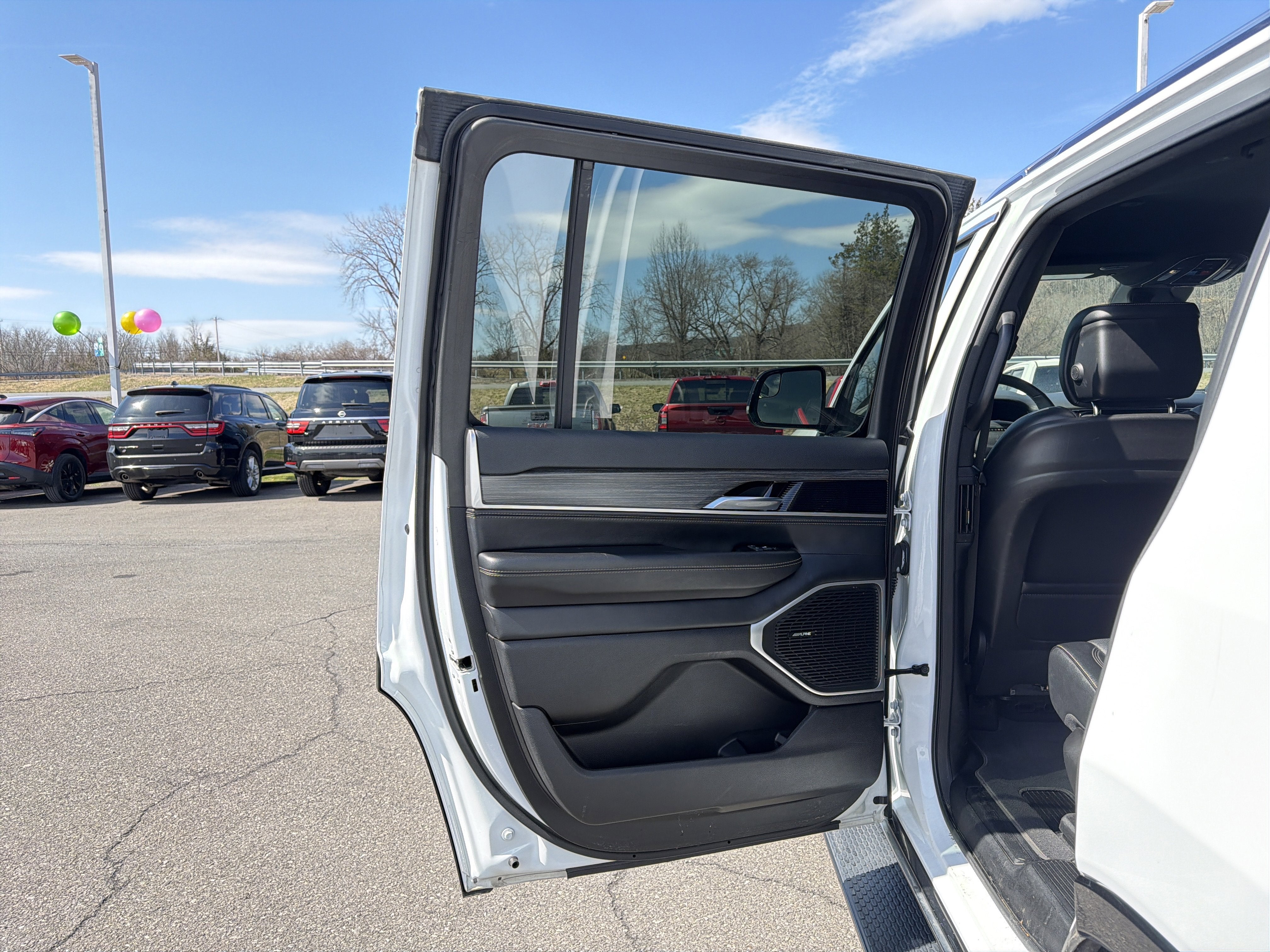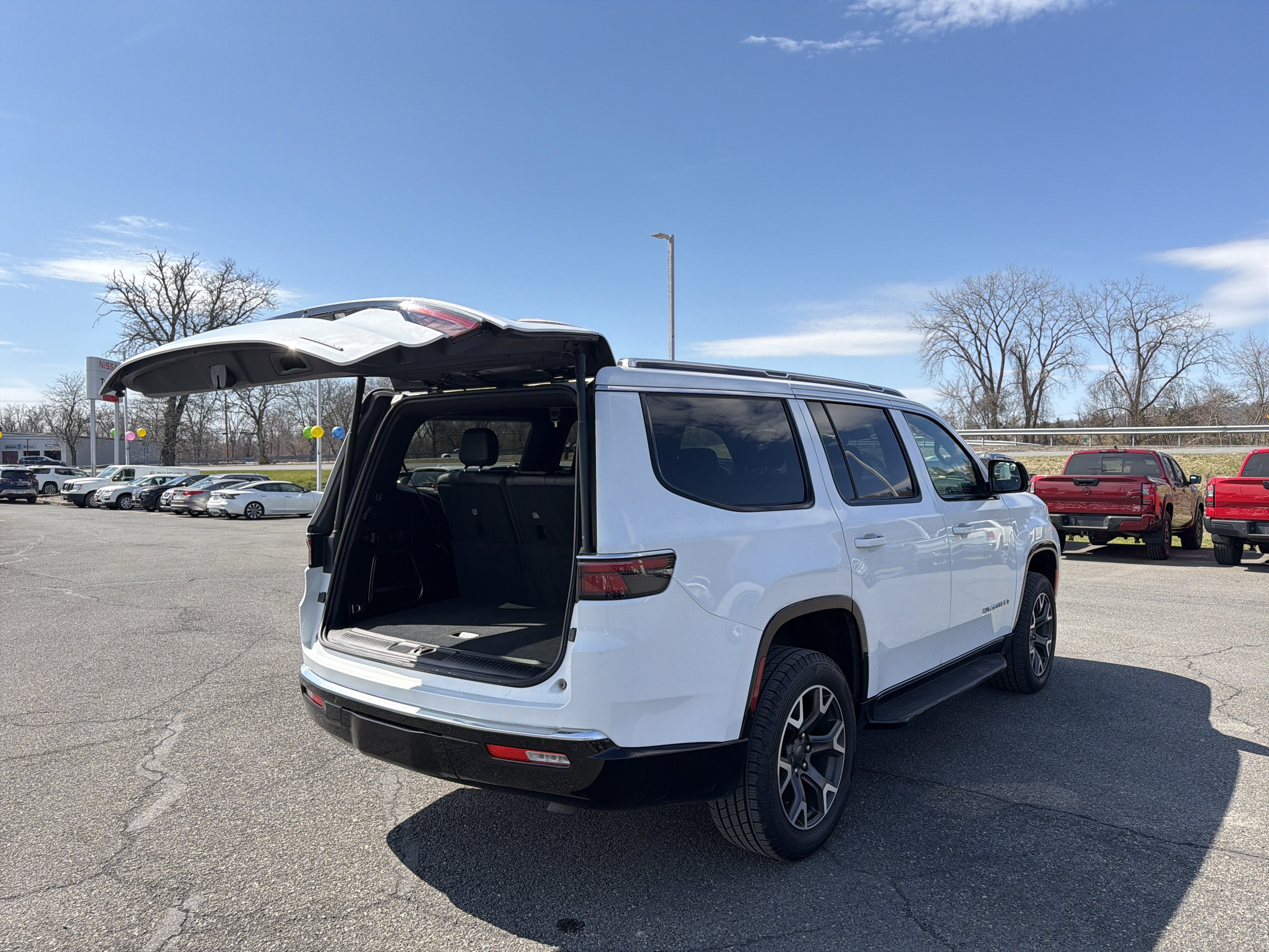 Romeo Nissan is proud to present this 2023 Jeep Wagoneer with Preferred Equipment Group (60/40 Power Recline 3rd Row Seat, Heads-Up Display, Quadra-Lift Air Suspension, and Semi Active Damping), Quick Order Package 25N, 10 Speakers, 20 x 9.0 Aluminum Wheels, 3.55 Rear Axle Ratio, 3rd row seats: bench, 4-Wheel Disc Brakes, ABS brakes, Adjustable pedals, Air Conditioning, Alloy wheels, AM/FM radio: SiriusXM with 360L, Anti-whiplash front head restraints, Audio memory, Auto High-beam Headlights, Auto-dimming door mirrors, Auto-dimming Rear-View mirror, Auto-leveling suspension, Automatic temperature control, Brake assist, Bumpers: body-color, Compass, Delay-off headlights, Driver door bin, Driver vanity mirror, Driver's Seat Mounted Armrest, Dual front impact airbags, Dual front side impact airbags, Electronic Stability Control, Emergency communication system: Automatic SOS Call, Exterior Parking Camera Rear, Four wheel independent suspension, Front anti-roll bar, Front Bucket Seats, Front Center Armrest w/Storage, Front dual zone A/C, Front fog lights, Front reading lights, Fully automatic headlights, Garage door transmitter, Genuine wood console insert, Genuine wood dashboard insert, Genuine wood door panel insert, Heated door mirrors, Heated front seats, Heated rear seats, Heated steering wheel, Illuminated entry, Knee airbag, Leather Trimmed Bucket Seats, Low tire pressure warning, Memory seat, Navigation System, Normal Duty Suspension, Occupant sensing airbag, Outside temperature display, Overhead airbag, Overhead console, Panic alarm, Passenger door bin, Passenger seat mounted armrest, Passenger vanity mirror, Pedal memory, Power adjustable front head restraints, Power door mirrors, Power driver seat, Power Liftgate, Power passenger seat, Power steering, Power windows, Radio data system, Radio: Uconnect 5 Nav w/10.1 Display, Rain sensing wipers, Rear air conditioning, Rear anti-roll bar, Rear dual zone A/C, Rear reading lights, Rear seat center armrest, Rear window defroster, Rear window wiper, Reclining 3rd row seat, Remote keyless entry, Security system, Speed control, Speed-sensing steering, Speed-Sensitive Wipers, Split folding rear seat, Steering wheel memory, Steering wheel mounted audio controls, Tachometer, Telescoping steering wheel, Tilt steering wheel, Traction control, Trip computer, Turn signal indicator mirrors, Variably intermittent wipers, Ventilated front seats, and Voltmeter.