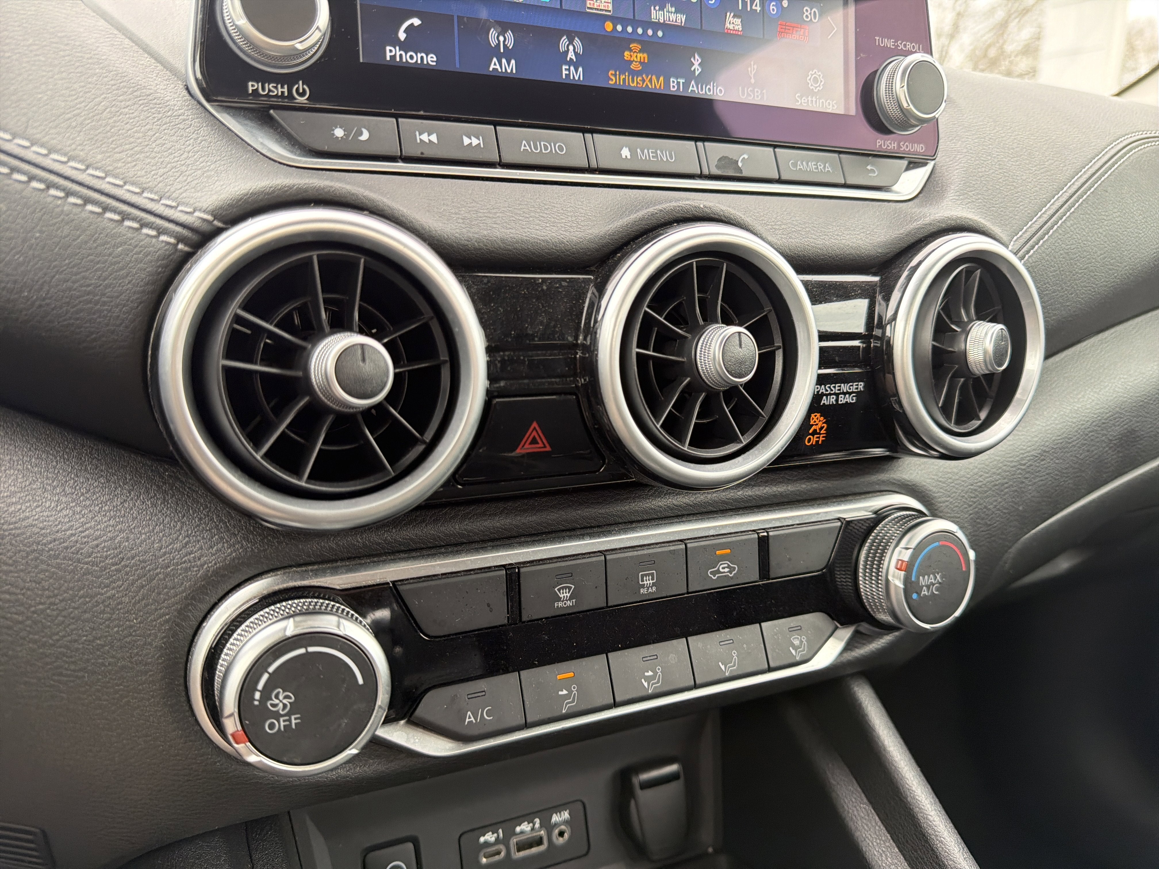 - Radio: AM/FM w/RDS/MP3/Aux-In -inc: 6 speakers plus 2 tweeters in A-pillar, 8" color display w/multi-touch control, streaming audio via Bluetooth, Bluetooth hands-free phone system, hands-free text messaging assistant, Siri Eyes Free, Google Assistant voice recognition w/Apple CarPlay and Android Auto, NissanConnect, (1) front USB connection port (type A), (1) additional front USB (type C), (1) charge-only USB (type A) center console and SiriusXM radio w/advanced audio features