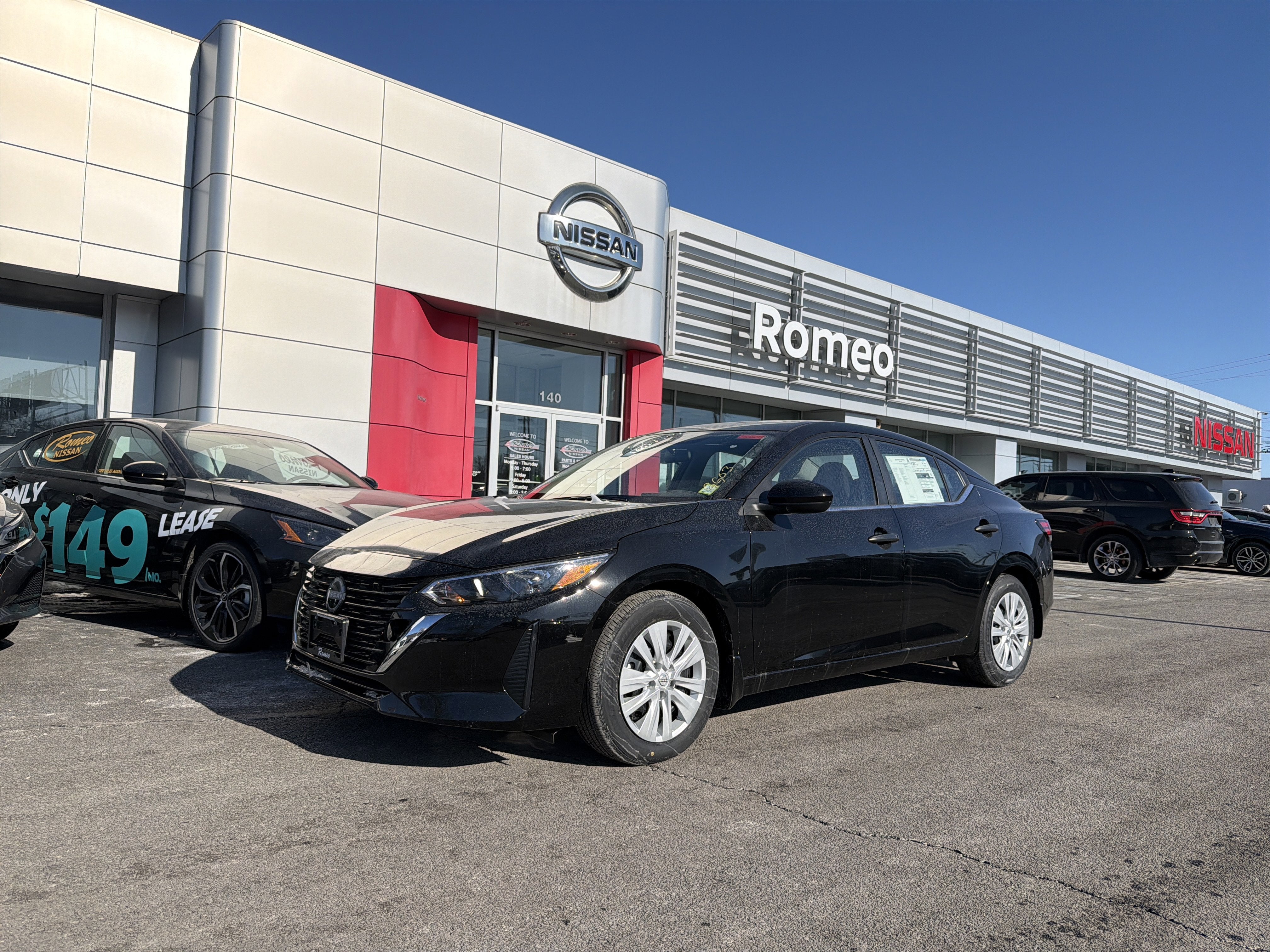 Romeo Nissan is proud to present this 2025 Nissan Sentra with 4 Speakers, ABS brakes, Air Conditioning, AM/FM radio, Auto High-beam Headlights, Blind Spot Warning, Body Colored Splash Guards (4-Piece), Brake assist, Bumpers: body-color, Carpeted Floor Mats with Trunk Mat, Cloth Seat Trim, Delay-off headlights, Driver door bin, Driver vanity mirror, Dual front impact airbags, Dual front side impact airbags, Electronic Stability Control, Four wheel independent suspension, Front anti-roll bar, Front Bucket Seats, Front Center Armrest, Front reading lights, Fully automatic headlights, Illuminated entry, Knee airbag, Low tire pressure warning, NissanConnect featuring Apple CarPlay and Android Auto, Occupant sensing airbag, Outside temperature display, Overhead airbag, Overhead console, Panic alarm, Passenger door bin, Passenger vanity mirror, Power door mirrors, Power steering, Power windows, Radio data system, Radio: AM/FM with RDS/MP3/Aux-in, Rear anti-roll bar, Rear Parking Sensors, Rear side impact airbag, Rear window defroster, Remote keyless entry, Speed control, Speed-sensing steering, Split folding rear seat, Steering wheel mounted audio controls, Tachometer, Telescoping steering wheel, Tilt steering wheel, Traction control, Trip computer, Variably intermittent wipers, and Wheels: 16 Steel with Full Covers.
