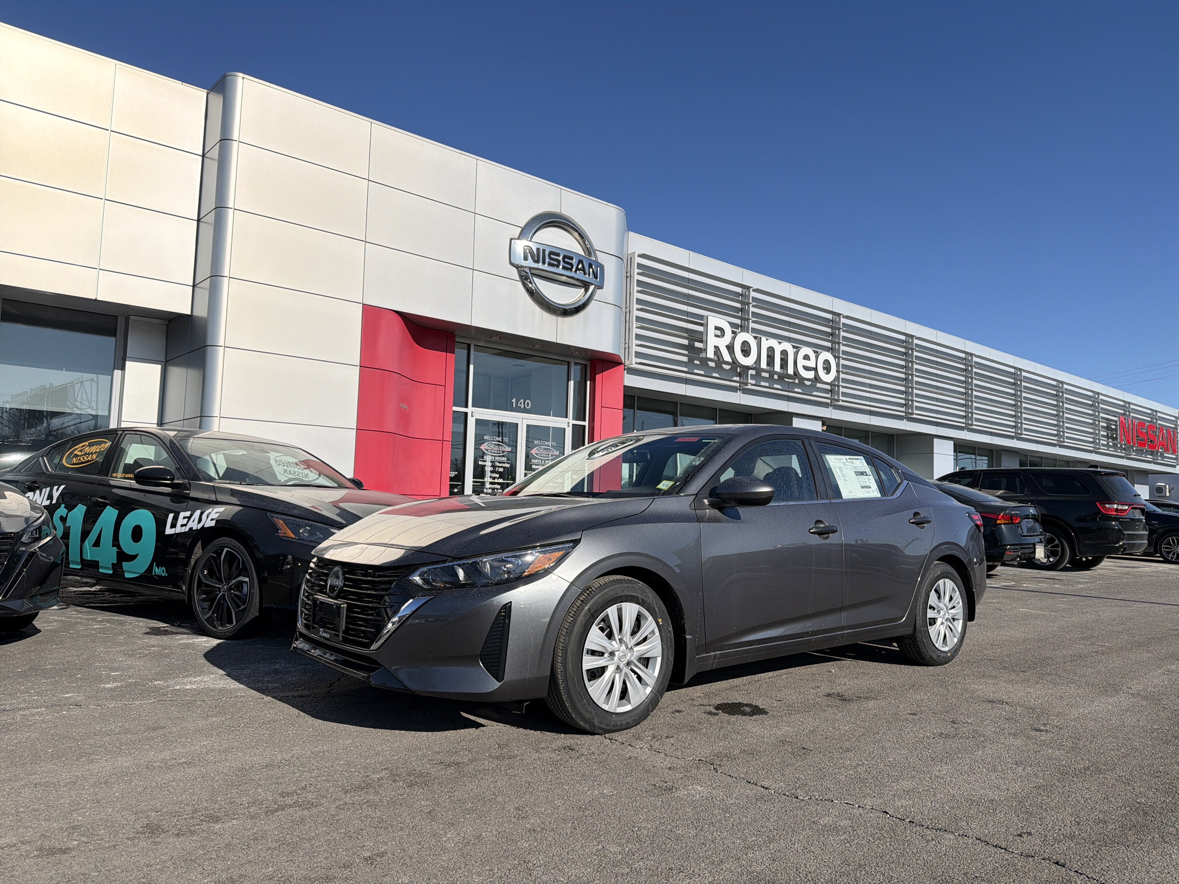 Romeo Nissan is proud to present this 2025 Nissan Sentra with 4 Speakers, ABS brakes, Air Conditioning, AM/FM radio, Auto High-beam Headlights, Blind Spot Warning, Body Colored Splash Guards (4-Piece), Brake assist, Bumpers: body-color, Carpeted Floor Mats with Trunk Mat, Cloth Seat Trim, Delay-off headlights, Driver door bin, Driver vanity mirror, Dual front impact airbags, Dual front side impact airbags, Electronic Stability Control, Four wheel independent suspension, Front anti-roll bar, Front Bucket Seats, Front Center Armrest, Front reading lights, Fully automatic headlights, Illuminated entry, Knee airbag, Low tire pressure warning, NissanConnect featuring Apple CarPlay and Android Auto, Occupant sensing airbag, Outside temperature display, Overhead airbag, Overhead console, Panic alarm, Passenger door bin, Passenger vanity mirror, Power door mirrors, Power steering, Power windows, Radio data system, Radio: AM/FM with RDS/MP3/Aux-in, Rear anti-roll bar, Rear Parking Sensors, Rear side impact airbag, Rear window defroster, Remote keyless entry, Speed control, Speed-sensing steering, Split folding rear seat, Steering wheel mounted audio controls, Tachometer, Telescoping steering wheel, Tilt steering wheel, Traction control, Trip computer, Variably intermittent wipers, and Wheels: 16 Steel with Full Covers.